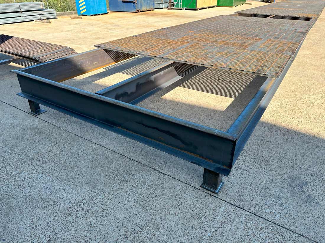 Marco had the task of fabricating custom crossover platforms. These platforms were made of bar grating, ladder rungs and other steel, then PVC coated.
