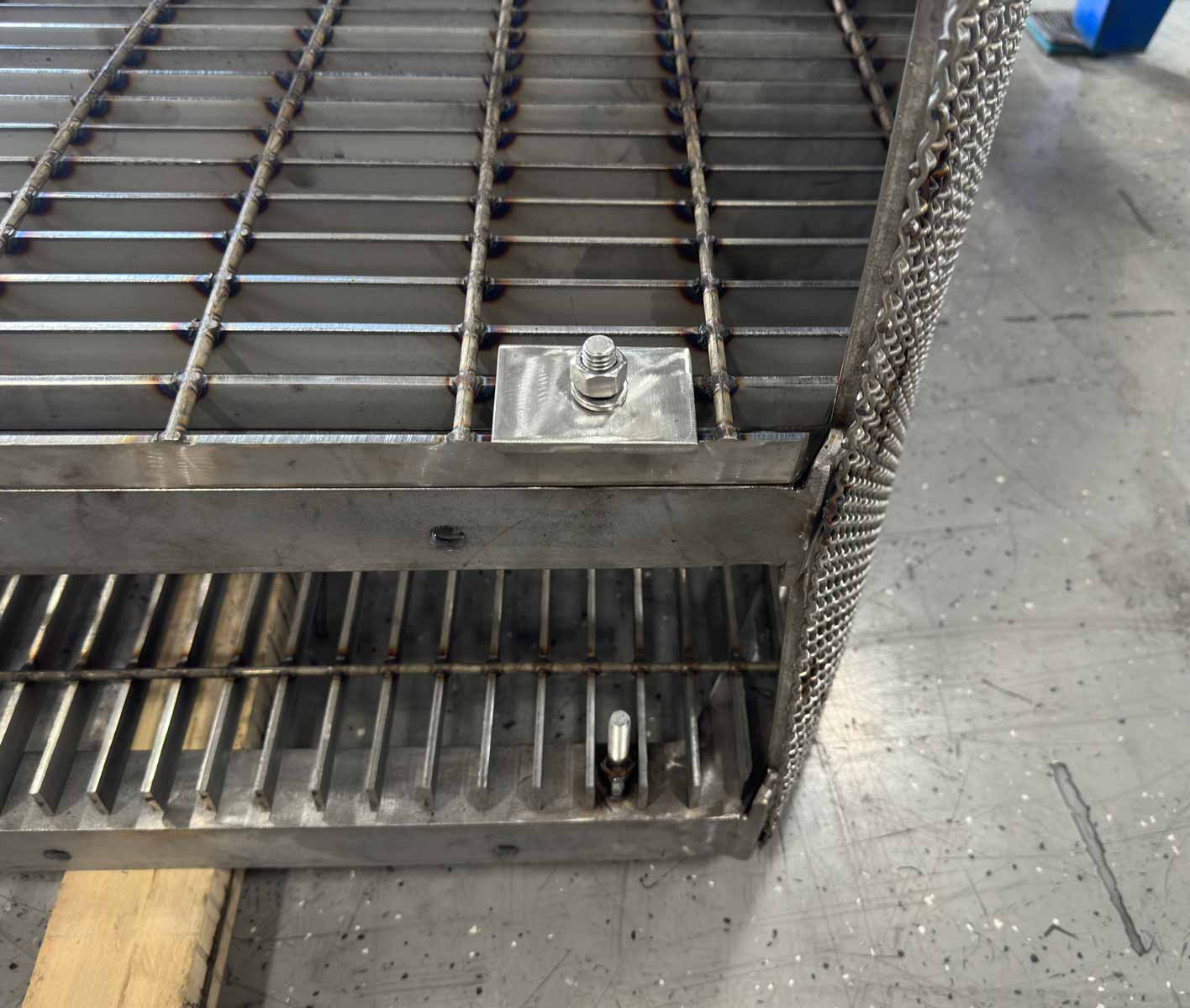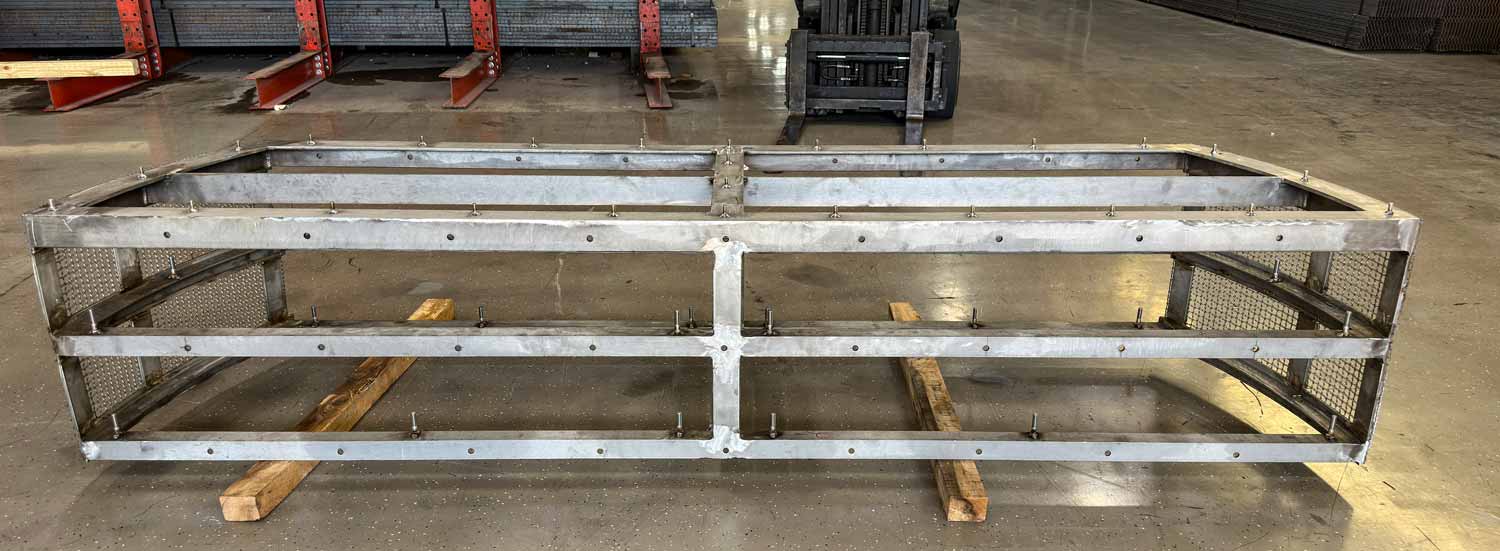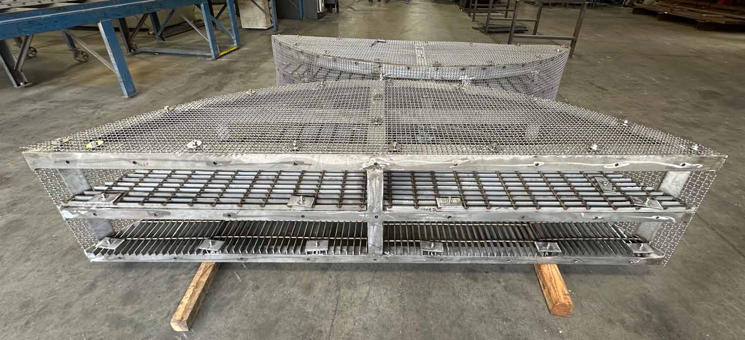 We assisted in designing this industrial-sized basket with 4 large sections that fit together onsite, making transport and handling more manageable without compromising strength or performance.