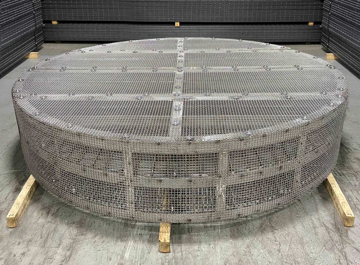 We regularly fabricate wire mesh for our industrial clients for components like vessel internals, catalyst support grids, outlet collectors, strainer baskets, and more. We stock many specialty wire mesh alloys like Stainless Steel, Inconel, and Monel.