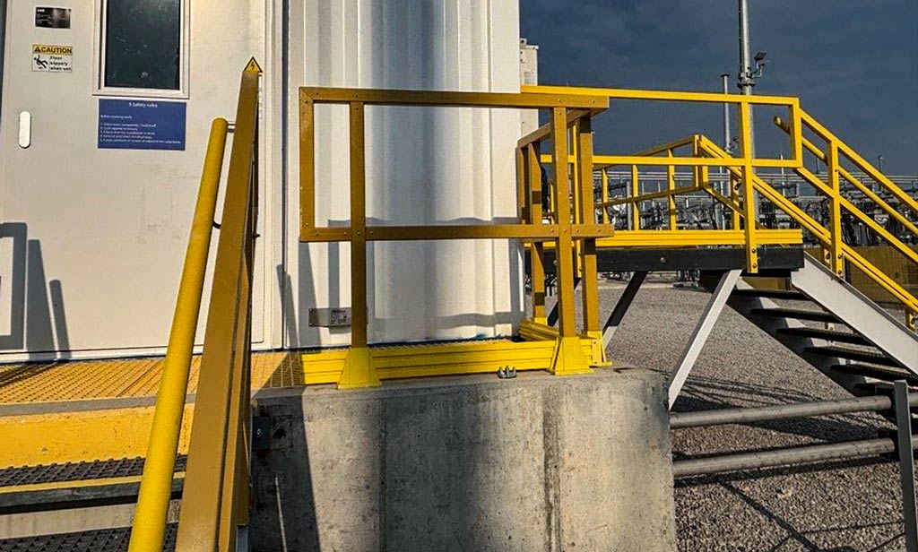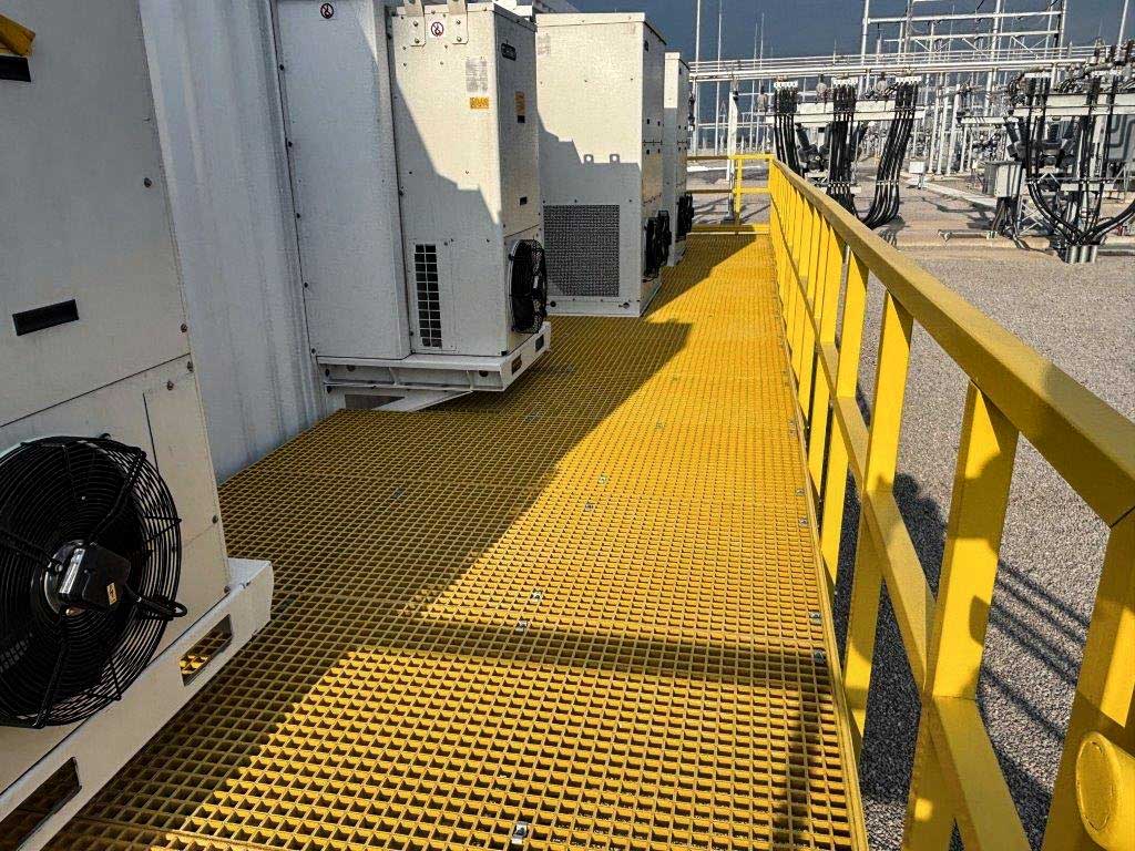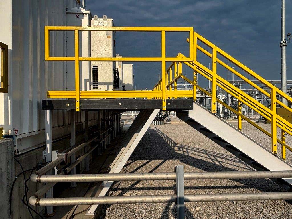 This project featured a fully non-conductive design using fiberglass-reinforced plastic (FRP). The scope included custom molded fiberglass grating for fencing, elevated platforms built with FRP structural shapes, non-conductive grating walkways, and FRP stair treads. All components were selected for long-term durability, corrosion resistance, and safety in demanding environments.